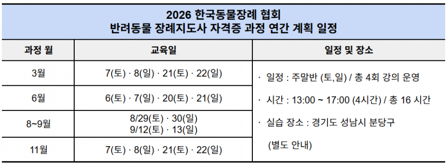 2026년도 반려동물 장례지도사 자격증 과정을 아래와 같이 운영합니다.